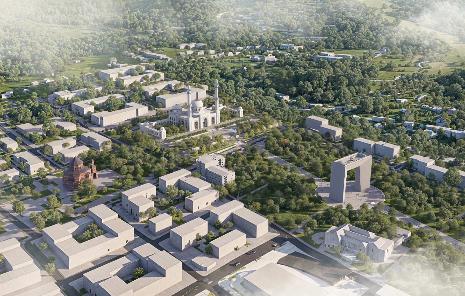 Xankəndi şəhərində planlaşdırılan yeni məscid layihəsi, şəhərin memarlıq simasına uyğun, funksional və estetik baxımdan düşünülmüş dini-mədəni məkanın formalaşdırılmasını hədəfləyir. Layihə 3,6 hektar ərazini əhatə edir və məscidlə yanaşı, parkinq sahəsi, köməkçi tikililər və dəstəmaz otağı kimi vacib infrastruktur elementlərini özündə birləşdirirBaş planın işlənməsi zamanı ətraf mühitlə harmoniyanın qorunması, yaşayış binaları, kilsə və ictimai obyektlərlə düzgün planlaşdırılmış əlaqə nəzərə alınıb. Məscidin ümumi görünüşü ənənəvi İslam memarlıq ünsürləri ilə müasir həllərin vəhdətini əks etdirir. Fasadlarda kaşı bəzəkləri, mərmər üzlüklər və taxta şəbəkə elementlərindən istifadə layihənin əsas vizual xüsusiyyətlərini təşkil edirLayihə yanaşması yalnız ibadət məkanının yaradılmasını deyil, həm də şəhər sakinləri üçün açıq, rahat və mənəvi dəyər daşıyan ictimai mühit formalaşdırmağı məqsəd qoyur. Yeni məscid, Xankəndidə dini irsin bərpası və mədəni müxtəlifliyin qorunması baxımından mühüm layihələrdən biri kimi dəyərləndirilir.