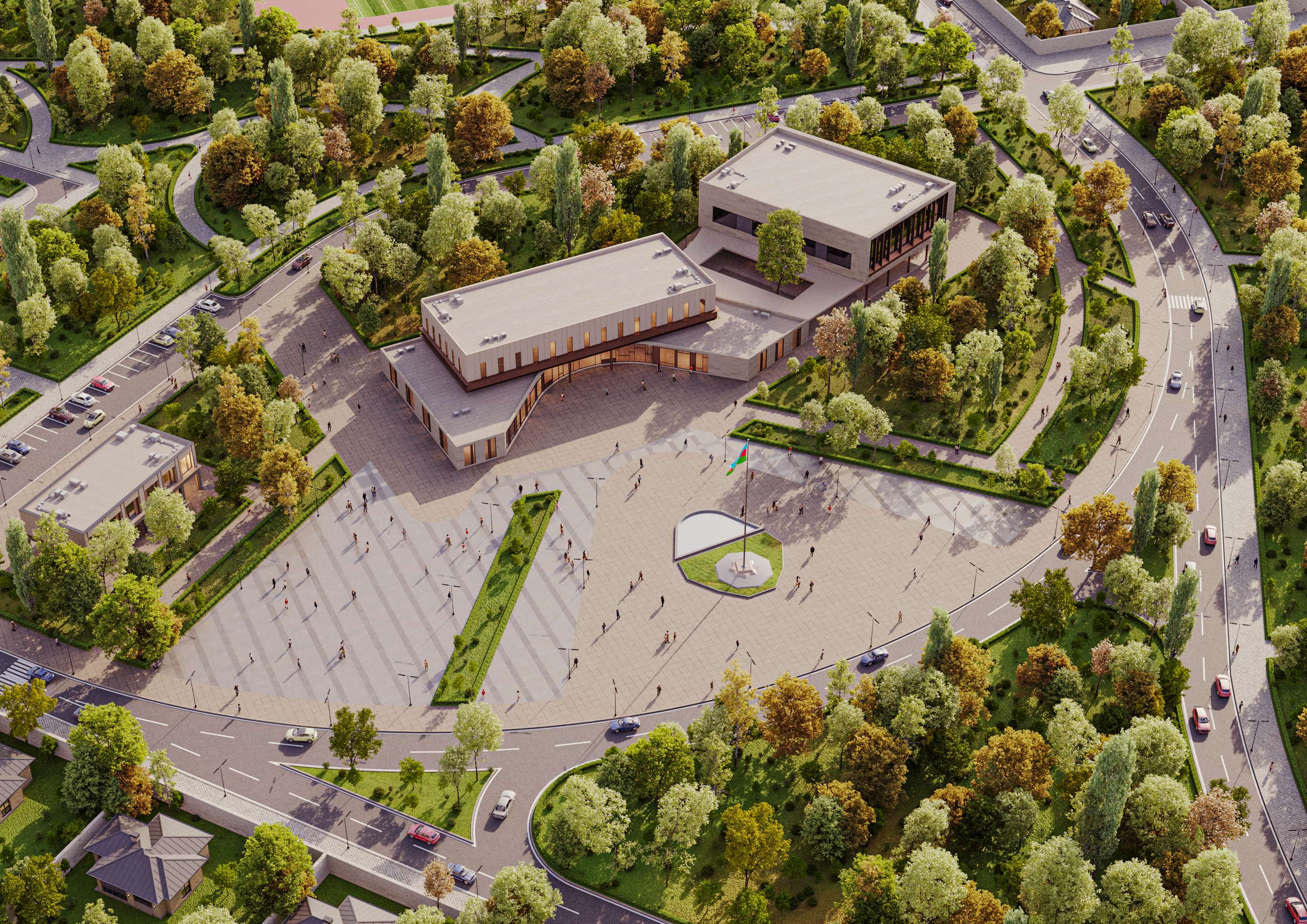 The design work for the village will be carried out in stages. Taking into account the number of people who will live here, 78.05 ha of land has been allocated for the first stage of the construction of residential quarters. In the first stage, 108 private houses will be built for the resettlement of 611 people, and all conditions will be created to ensure the employment of the population in the village of Taghibeyli. A total of 2,124 people are expected to be employed in cultural and entertainment centers, a number of enterprises of various purposes, economic development facilities, education, management, and agriculture.