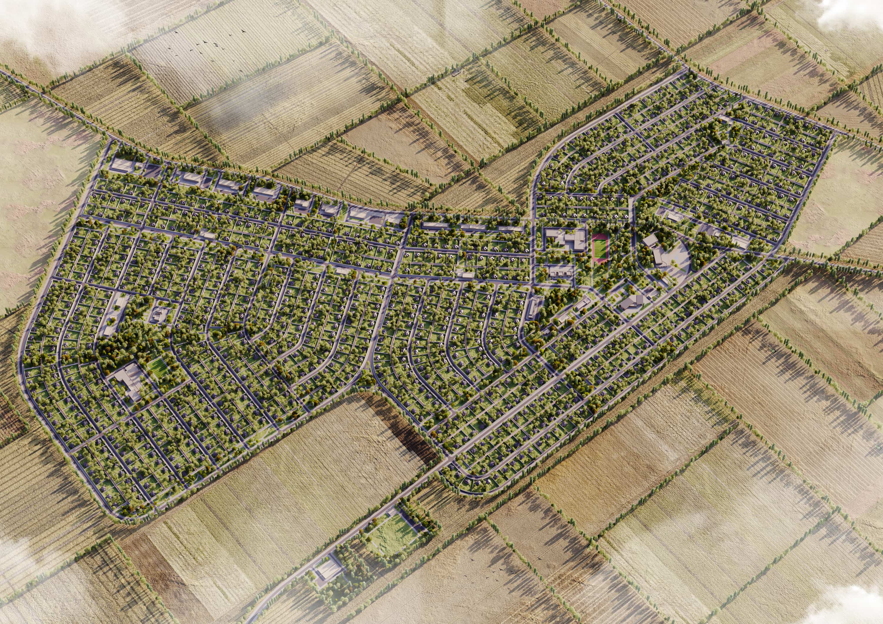 The total area projected for the settlement of 3540 people (885 families) in Taghibeyli village is 255.31 hectares.